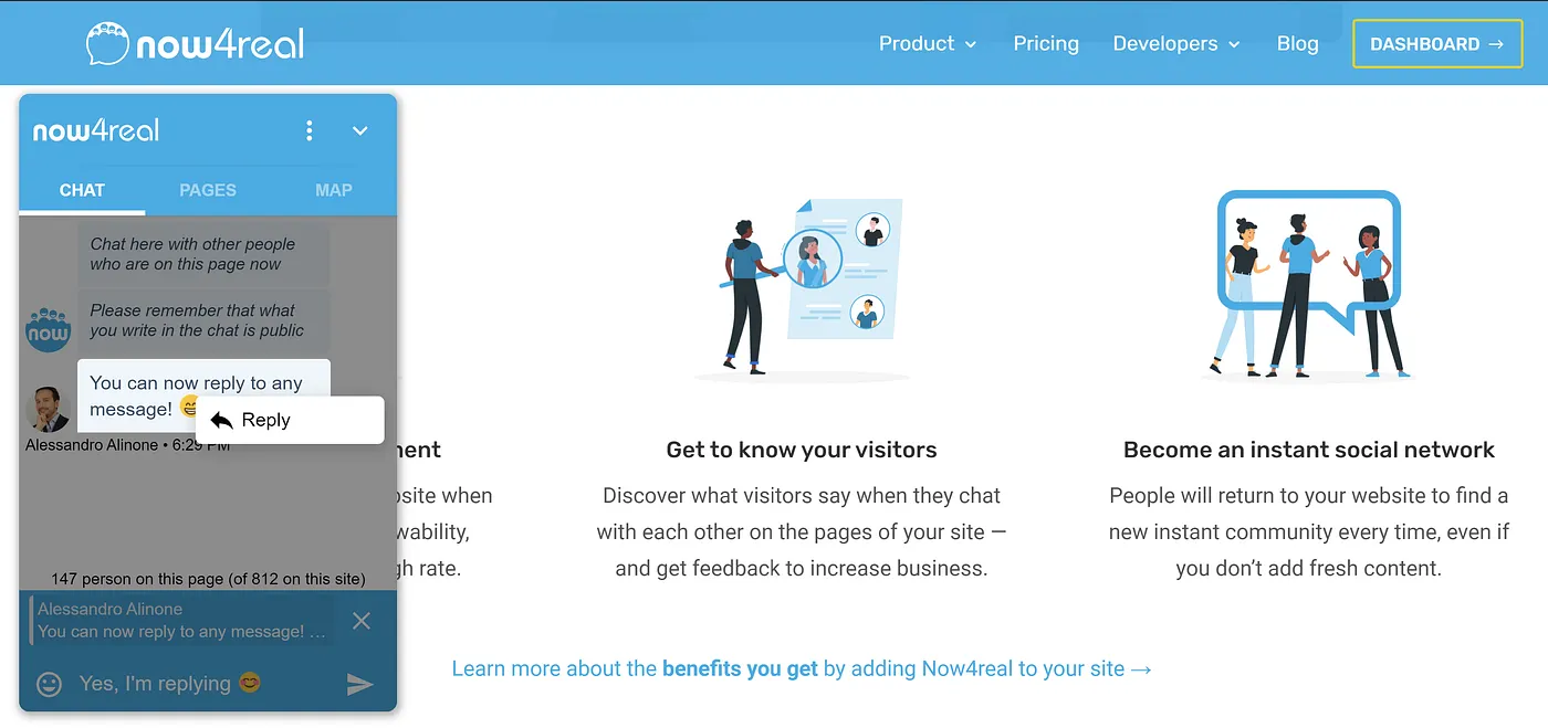 Now4real keeps getting new features while remaining simple to use and very intuitive. We are very excited to announce that today we have released a killer update: you can reply to individual messages, as well as delete any of your past messages.